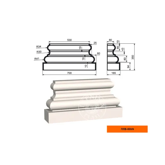 Пилястра ПЛВ-500/1 база(350х165х700) DECOMASTER