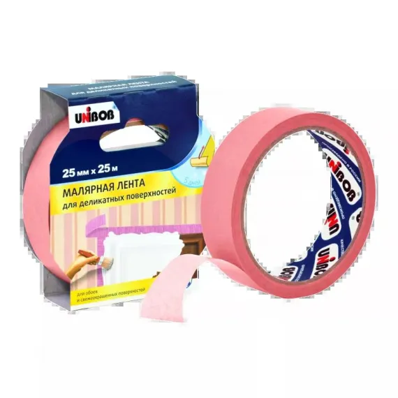 Купить Малярная лента UNIBOB 25 мм х 25 м не составит никакого труда. Обратитесь к консультантам при оформлении заказа и они помогут рассчитать необходимое количество.