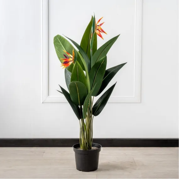 110/К/357 Стрелиция искусственная куст 2 части с цветами, h110см (силикон/полиуретан)
