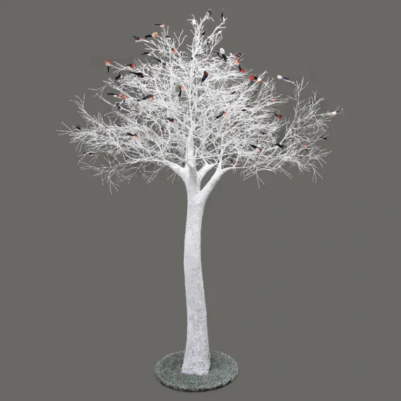 300разб/Пр/173-1 Дерево заснеженное на основан.со снегирями h300см