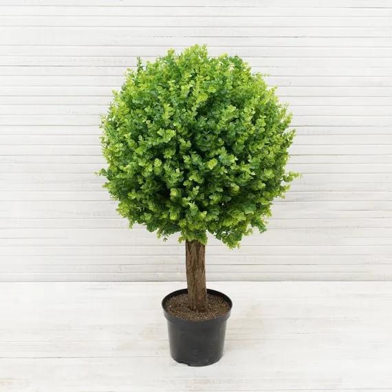СШ085/228/1(з.) Самшит искусственный шар Эвкалипт Элит d50см на стволе в тех. кашпо, h85см