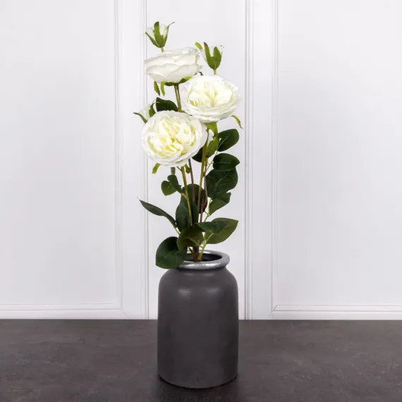 7141А/9120-05/23Р Роза искусственная пионовидная 3 головы d8см, 4 бутона, h76см, белая