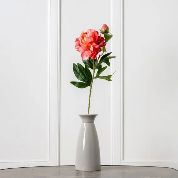 7141А/9149-05/19 Пион искусственный 1 голова d15см, 1 бутон, h62см, коралловый