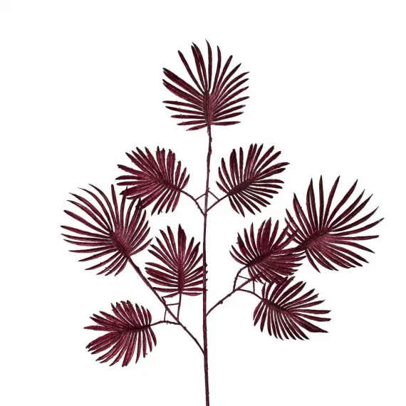 7143/0030-15/11 Ветка Веерной пальмы искусственная мелкая h70см, бордовая