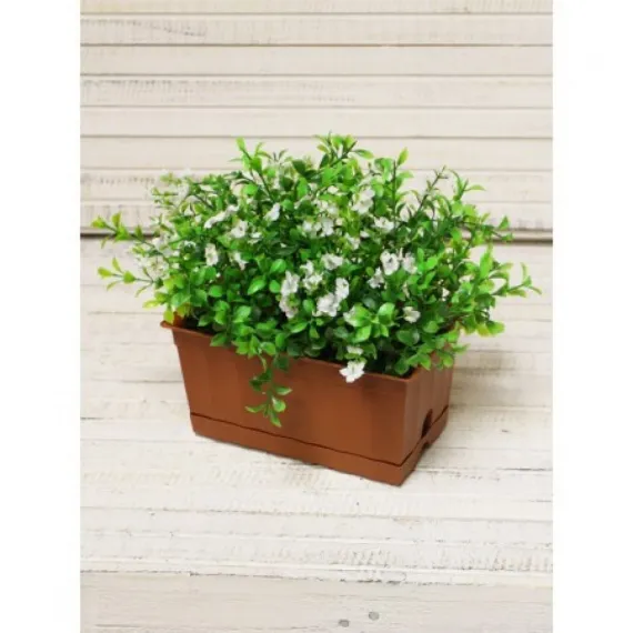 Ц175 Французский балкон малый Самшит цветущий искусственный в балконном кашпо, белый