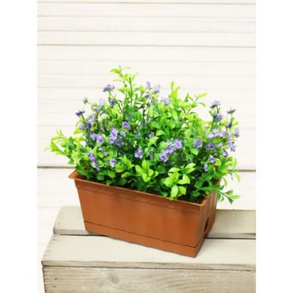 Ц176 Французский балкон малый Самшит цветущий искусственный в балконном кашпо, голубой