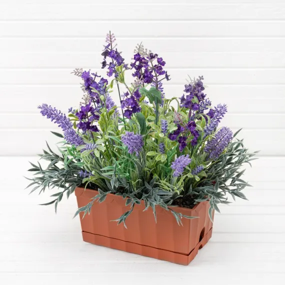 Ц436-1 Французский балкон малый Лаванда искусственная в балконном кашпо, сиреневая