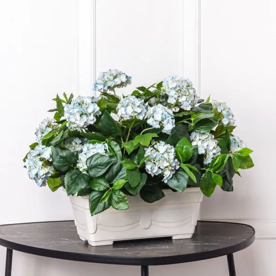 Ц621-2 Композиция искусственная Гортензия 21 голова (латекс) в балконном кашпо 35см, голубая