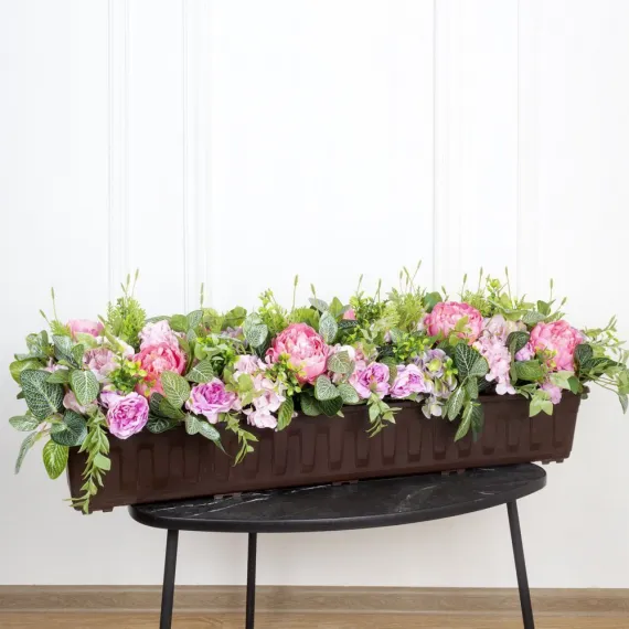К292(з) Композиция искусственная с пионами в балконном ящике