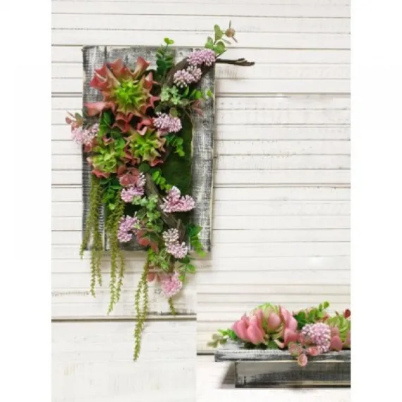 СКФ02-3 Фитокартина искусственная с суккулентами 30х30см в деревянной раме, розовый