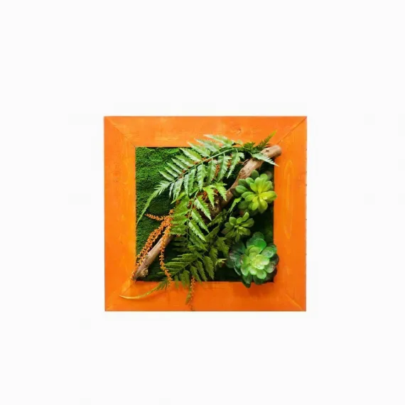СКФ06/1(з) Фитокартина искусственная с папоротником и суккулентами 50х50см в оранжевой раме