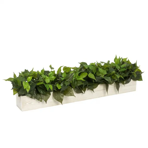 ТДЯ130(з) Композиция искусственная Сциндапсус зеленый в деревянном бежевом ящике 100х13х11см
