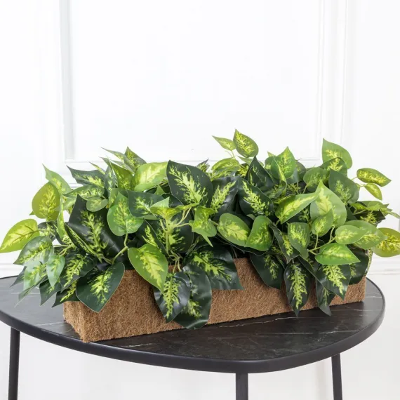 ТД004 Сциндапсус ампельный золотой искусственный в кокосовом боксе 50х13х10см