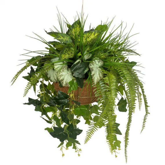 - Зеленые растения в подвесном кашпо