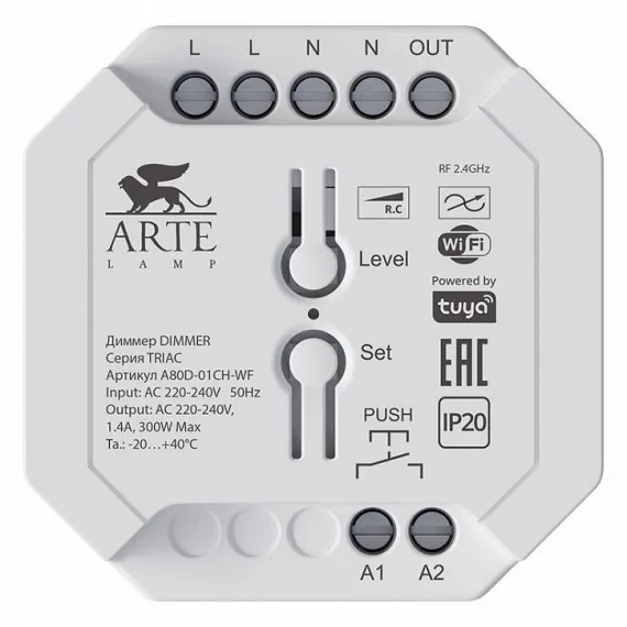 Купить Контроллер-диммер Wi-Fi для смартфонов и планшетов Arte Lamp Triac A80D-01CH-WF не составит никакого труда. Обратитесь к консультантам при оформлении заказа и они помогут рассчитать необходимое количество.