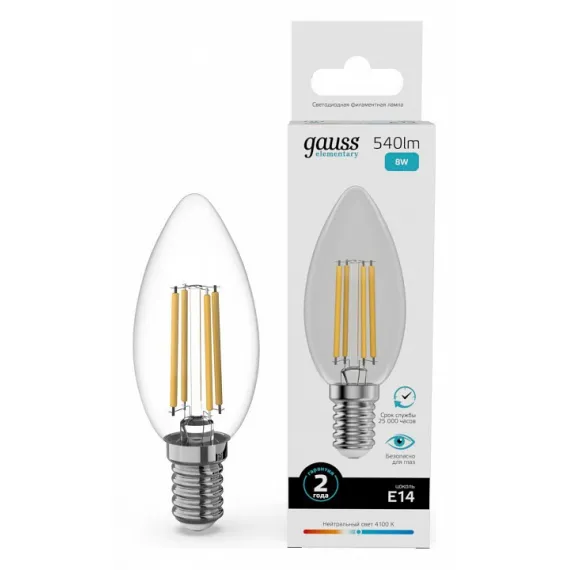 Купить Лампа светодиодная Gauss Filament Elementary E14 8Вт 4100K 32128 не составит никакого труда. Обратитесь к консультантам при оформлении заказа и они помогут рассчитать необходимое количество.