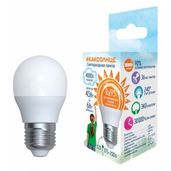 Купить Лампа светодиодная Uniel E27 6Вт 4000K UL-00006533 не составит никакого труда. Обратитесь к консультантам при оформлении заказа и они помогут рассчитать необходимое количество.