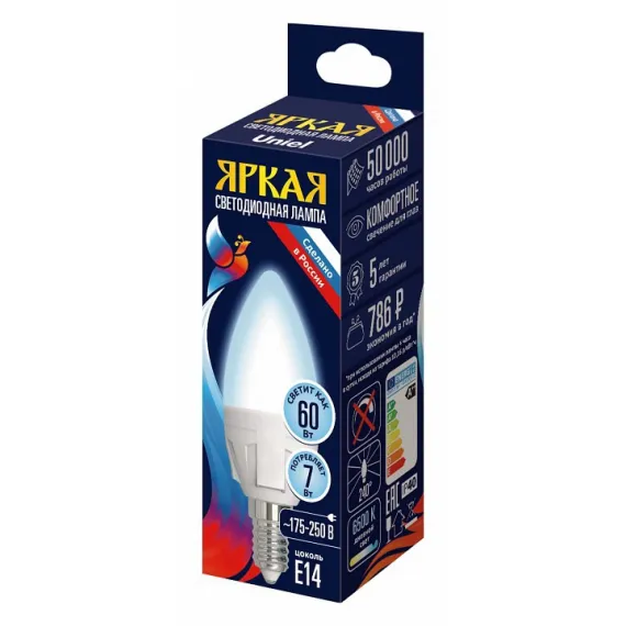 Купить Лампа светодиодная Uniel яркая E14 7Вт 6500K UL-00011014 не составит никакого труда. Обратитесь к консультантам при оформлении заказа и они помогут рассчитать необходимое количество.