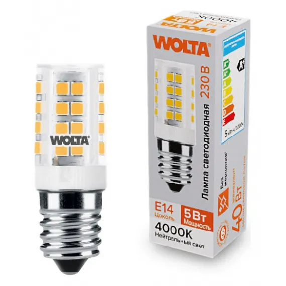 Лампа светодиодная Wolta E14 5Вт 4000K WSTD-JCD-5W4KE14-C