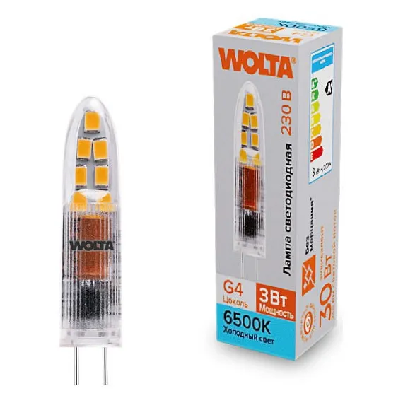 Лампа светодиодная Wolta G4 3Вт 6500K WSTD-JC-220V3W6KG4-P