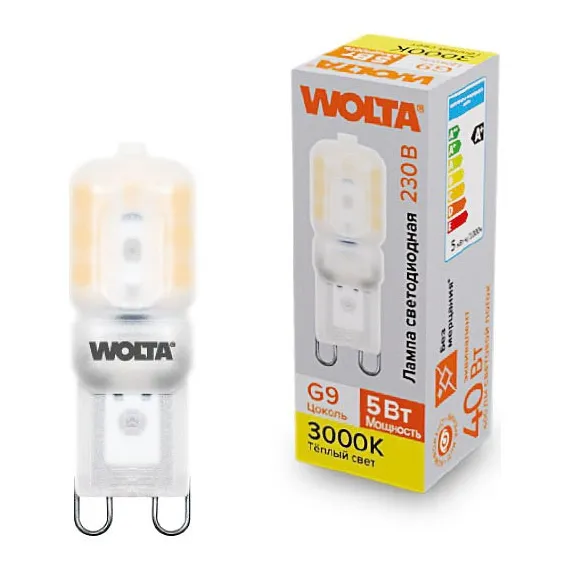 Лампа светодиодная Wolta G9 5Вт 3000K WSTD-JCD-5W3KG9-P