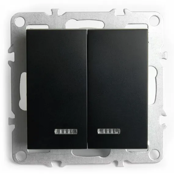 Выключатель двухклавишный с подсветкой без рамки Stekker Эрна 49147