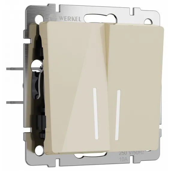 Выключатель двухклавишный с подсветкой без рамки Werkel айвори акрил W1120143