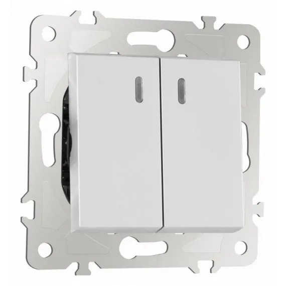 Выключатель проходной двухклавишный с подсветкой без рамки Arte Milano 203 203.33-2.silver