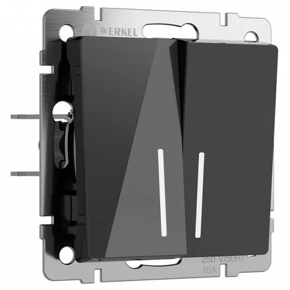Выключатель проходной двухклавишный с подсветкой без рамки Werkel черный акрил W1122148