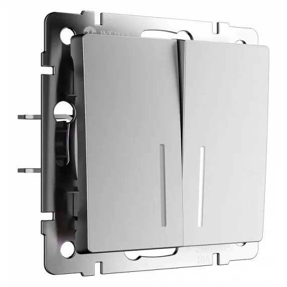 Выключатель проходной двухклавишный с подсветкой без рамки Werkel серебряный матовый W1122165
