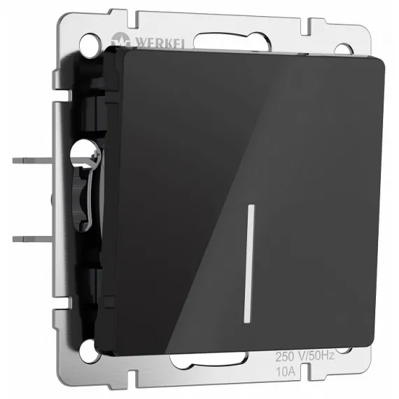 Выключатель проходной одноклавишный с подсветкой без рамки Werkel черный акрил W1112148