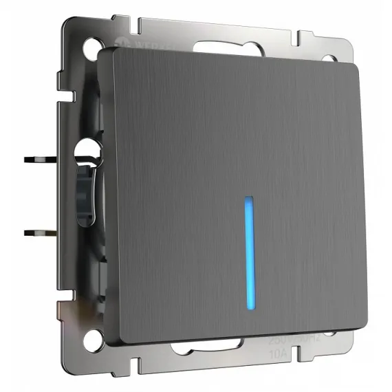Выключатель проходной одноклавишный с подсветкой без рамки Werkel графит рифленый W1112104