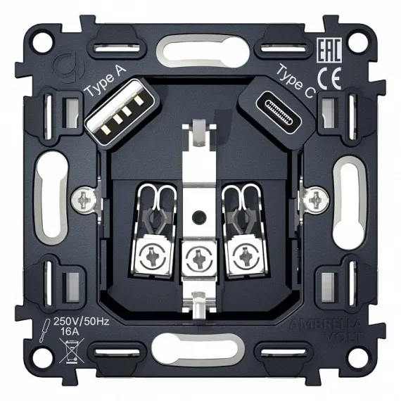 Механизм розетки с заземлением и 2хUSB type A и C Ambrella Volt Quant VM160