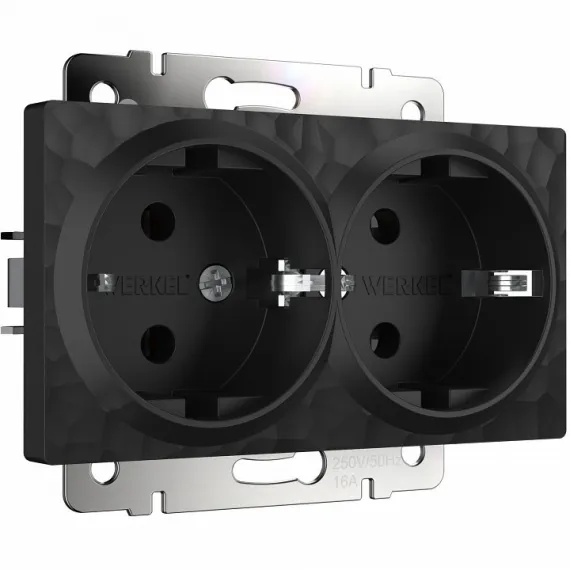 Розетка двойная с заземлением, без рамки Werkel Hammer черный W1272008