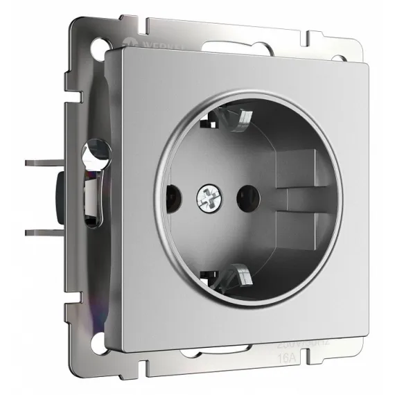 Розетка с заземлением, без рамки Werkel серебряный матовый W1171065