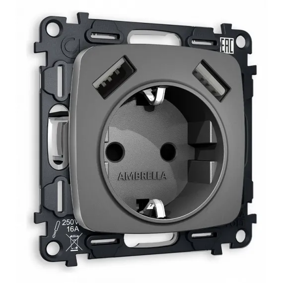 Розетка с заземлением и 2хUSB type A, без рамки Ambrella Volt Quant MO659010