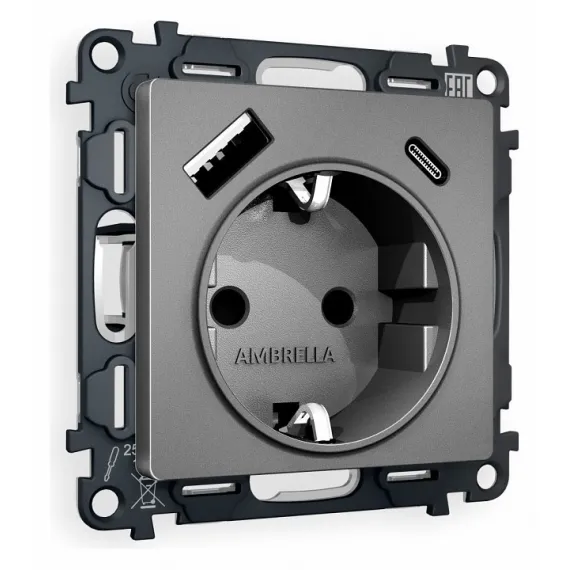 Розетка с заземлением и 2хUSB type A и C, без рамки Ambrella Volt Quant MA660010