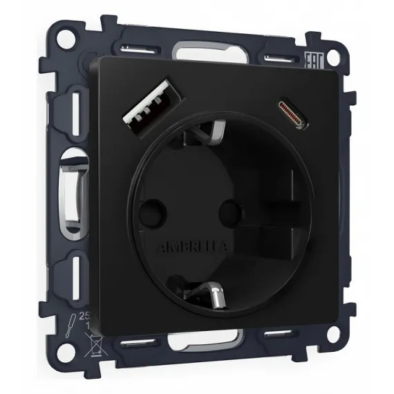 Розетка с заземлением и 2хUSB type A и C, без рамки Ambrella Volt Quant MA810010