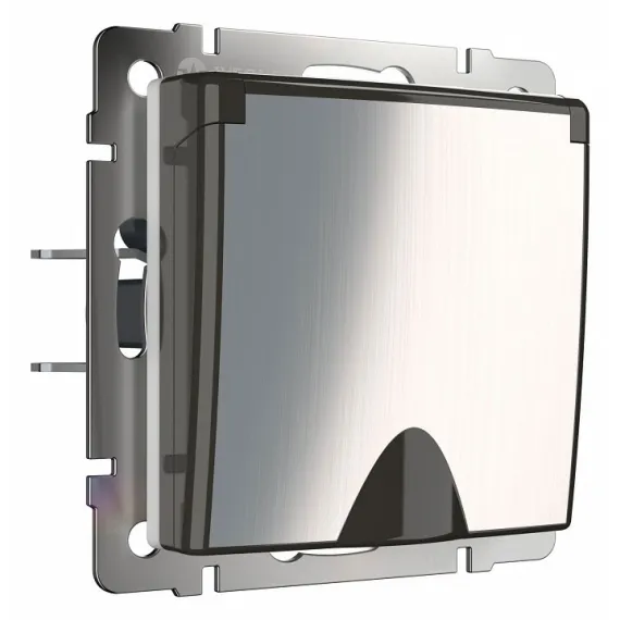 Розетка с заземлением и со шторками, без рамки с крышкой Werkel глянцевый никель W1171202