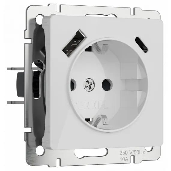 Розетка с заземлением и со шторками и 2хUSB, без рамки Werkel белый акрил W1171741