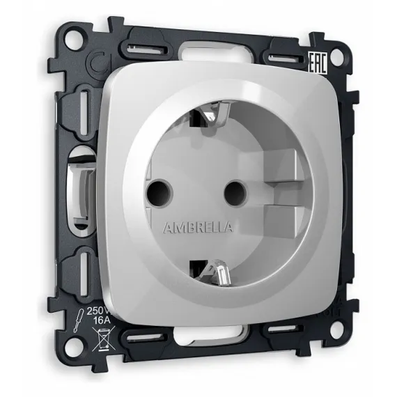 Розетка с заземлением и со шторкой, без рамки Ambrella Volt Quant MO407010