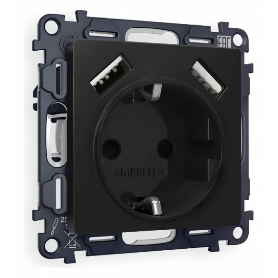 Розетка с заземлением и со шторкой и 2хUSB type A, без рамки Ambrella Volt Quant MA809010