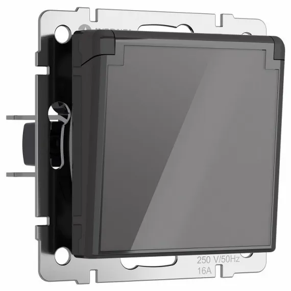 Розетка влагозащищенная с заземлением и со шторками, без рамки с крышкой Werkel графит акрил W1171244