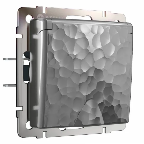 Розетка влагозащищенная с заземлением и со шторками, без рамки Werkel Hammer серебряный W1271206