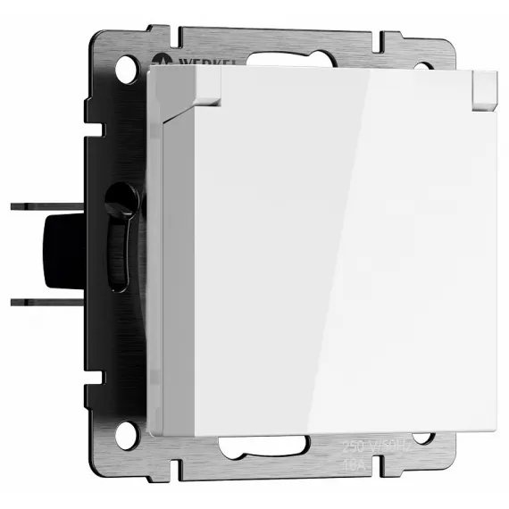 Розетка влагозащищенная с заземлением и со шторкой, без рамки с крышкой Werkel белые W1171201